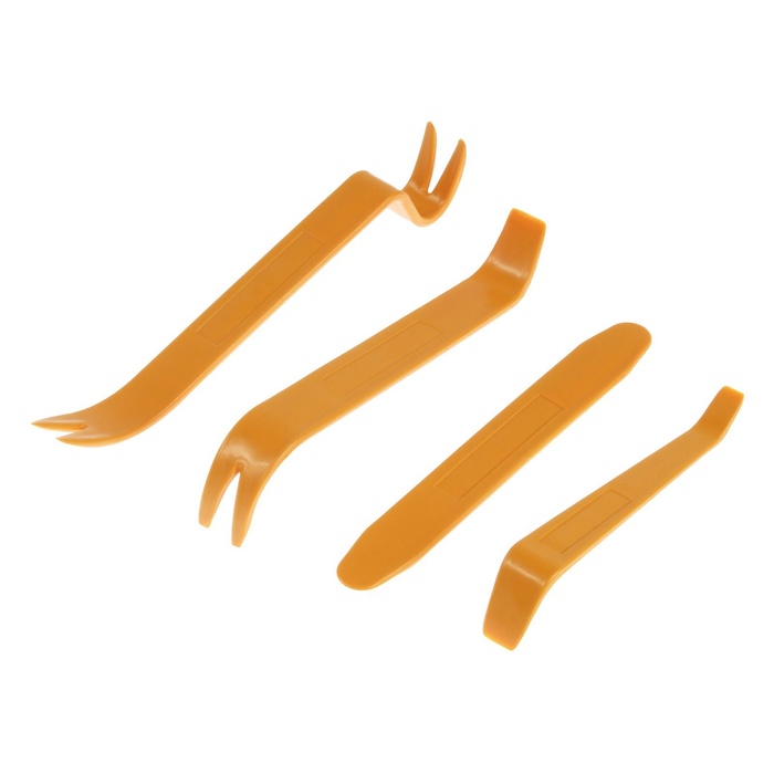 Набор инструментов для разборки салона автомобиля - обеспечивает аккуратность и высокую скорость разбора дверной обшивки практически всех существующих марок автомобилей. Для демонтажа требуемых элементов нужно: завести под край панели, вставить крепление и поддеть.