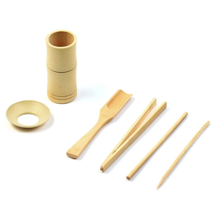 Набор включает в себя инструменты для проведения различных манипуляций во время чаепития или чайной церемонии.
