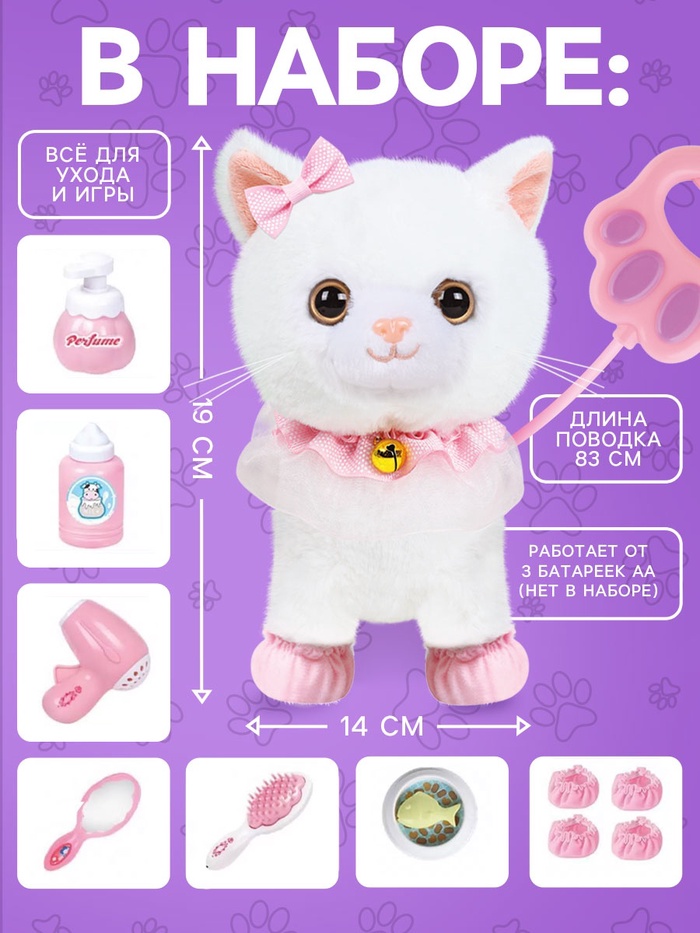 - Котёнок забавно ходит, мяукает, качает головой и виляет хвостиком.