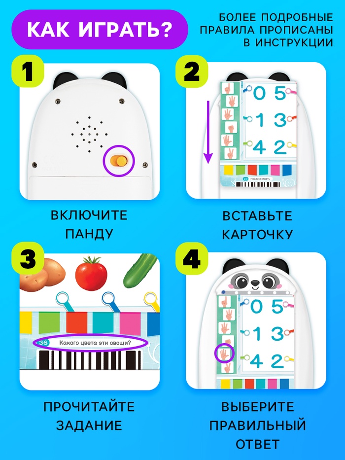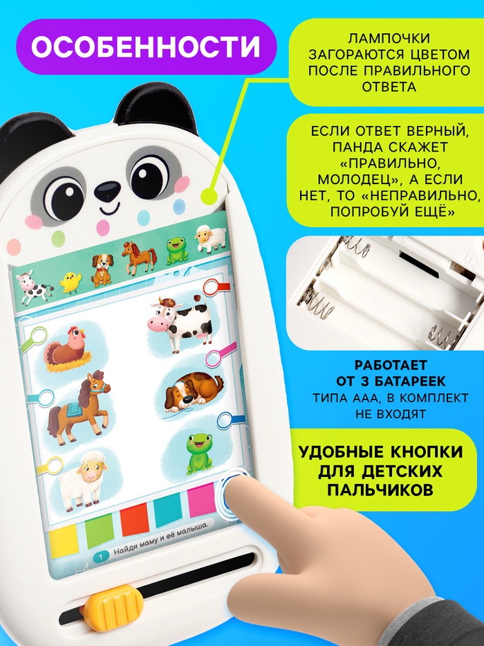 Интерактивный планшет с карточками «Панда» станет отличным помощником в обучении и развитии детей от 3 лет. Яркий планшет и двусторонние карточки превращают процесс обучения в увлекательную игру, где каждый день можно открывать что-то новое.