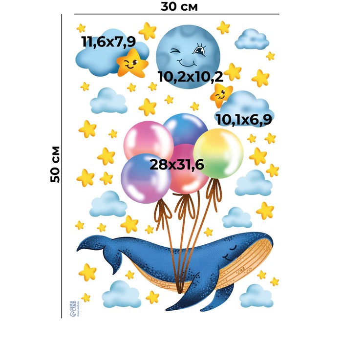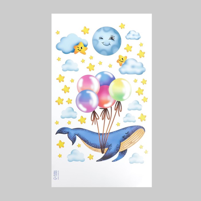 Интерьерная наклейка "Кит на шариках" 30х50 см
