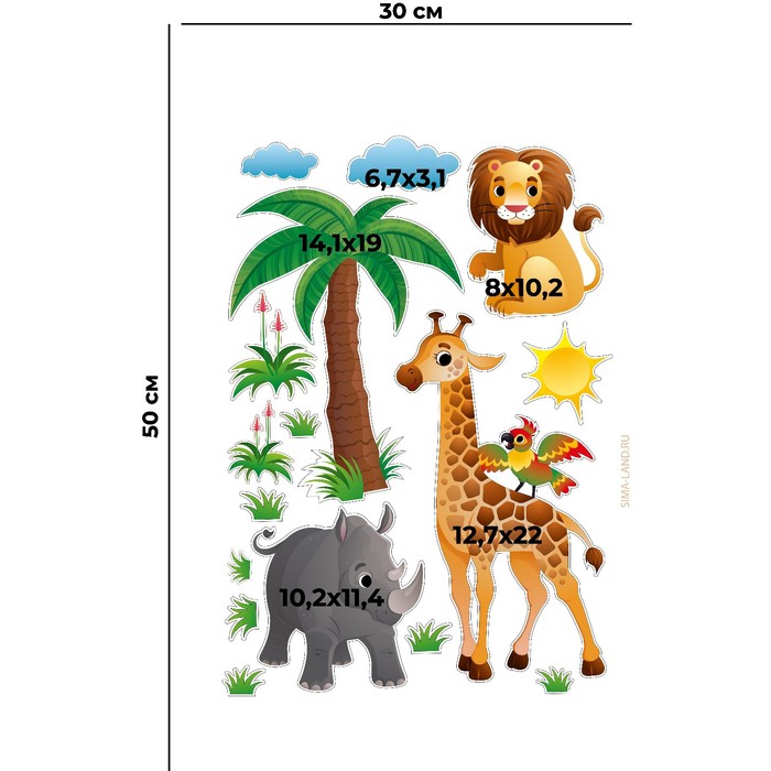 Интерьерная наклейка "Звери Африки" 30х50 см
