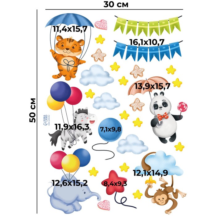 Интерьерная наклейка "Зверята" 30х50 см