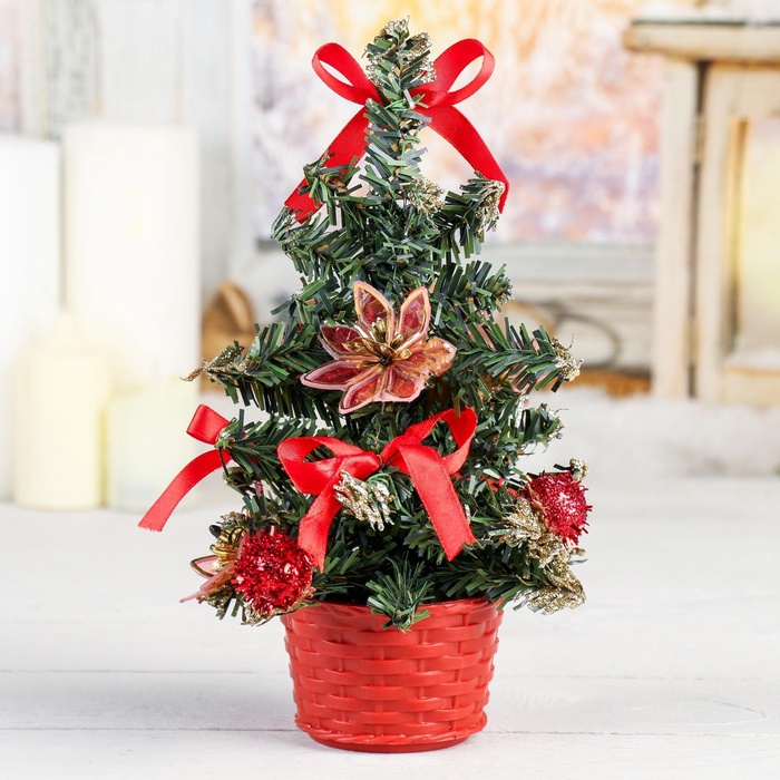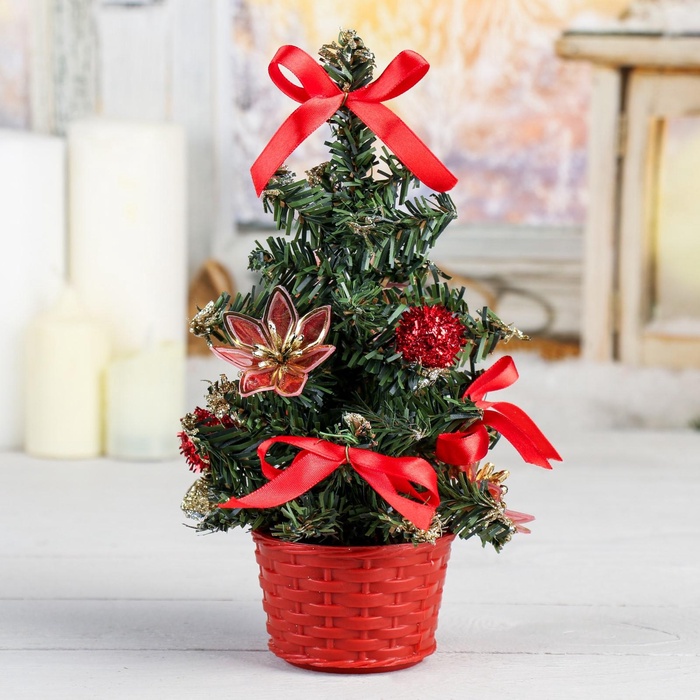 Настольная мини-ёлка с отгибающимися ПВХ ветками и красными украшениями станет выразительным акцентом новогоднего декора. Высота 20 см подходит для компактного размещения на столе или полке, а сочетание советского, фьюжн, новогоднего барокко и скандинавского стилей придаёт изделию особую атмосферу.