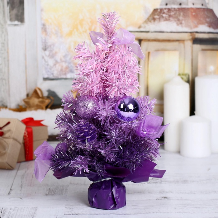 Настольная фиолетовая ёлка с отгибающимися ПВХ ветками и сиреневыми шарами привнесёт в интерьер необычное сочетание советского стиля, фьюжн и шебби-шика. Высота 30 см делает её компактным украшением для праздничного стола или рабочего места, позволяя легко вписать её в любое пространство. Эта мини-ёлка станет ярким акцентом, который привлечёт внимание и создаст атмосферу праздника.