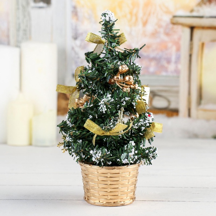 Настольная мини-ёлка с зелёной хвоей и золотистыми украшениями создаёт атмосферу зимнего праздника в компактном формате, идеально подходящем для небольших пространств. Её высота всего 20 см позволяет удобно разместить ёлку на столе, полке или любом другом месте, где вы хотите добавить немного волшебства и праздничного настроения. Отгибающиеся ветки из ПВХ легко принимают нужную форму, что обеспечивает естественный объём и удобство в декорировании, позволяя вам создать уникальный и привлекательный вид.