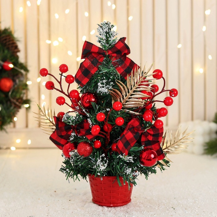 Настольная ёлка «Праздничная», 28 см, красный декор — это яркий и лаконичный акцент для новогоднего убранства. Искусственная модель высотой 28 см выполнена из ПВХ-веток с отгибающимся креплением, имеет зелёную хвою и красные ёлочные украшения — украшение в универсальном стиле, сочетающем элементы ар-деко, советского дизайна и скандинавской простоты. Подходит как для дома, так и для офиса, легко размещается на столе или подоконнике.