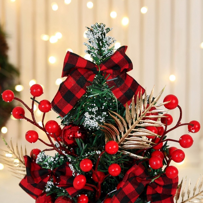 - Тип — настольная ёлка, идеально подходит для оформления небольших пространств: рабочего стола, детской комнаты или входной зоны.