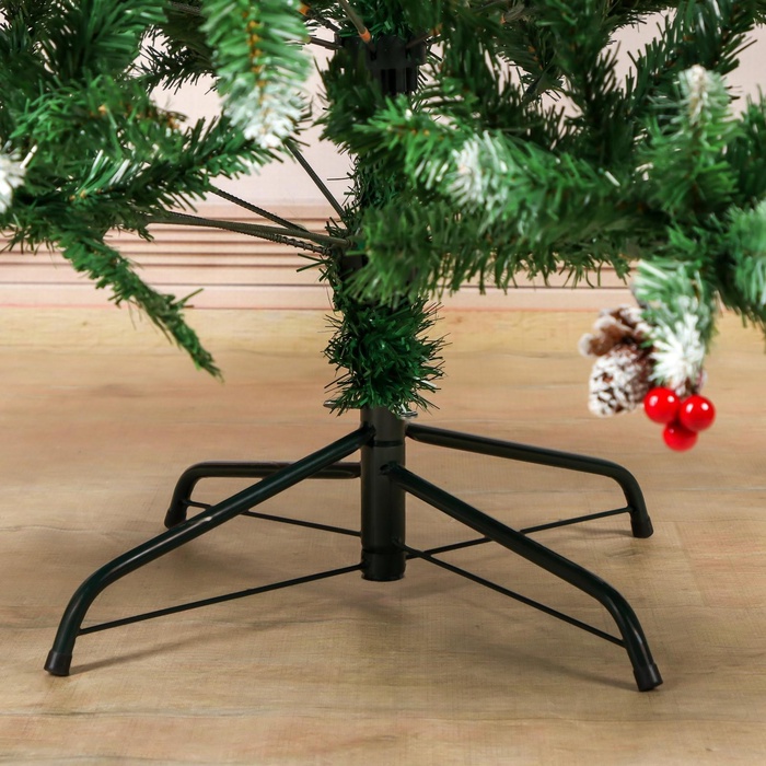 Искусственная ёлка «С инеем и ягодами, 210 см» — это мягкий и доброжелательный акцент для новогоднего убранства. Напольная модель высотой 210 см выполнена из 1100 ПВХ-веток на крючках, имеет зелёную хвою и декор в виде белых шишек и красно-коричневых ягод — украшение в универсальном стиле, сочетающем ар-деко, советские мотивы, скандинавскую простоту и фьюжн-подход. Подходит тем, кто ценит свет, объём и зимнюю атмосферу без лишней пестроты.
