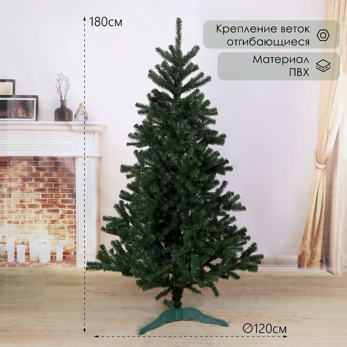 Напольная искусственная ёлка высотой 180 см с отгибающимися ПВХ ветками — практичное решение для создания праздничного интерьера в классическом или ретро-стиле. Диаметр нижнего яруса 120 см формирует объёмную и устойчивую основу, а зелёный оттенок хвои подчёркивает природную свежесть и насыщенность цвета.