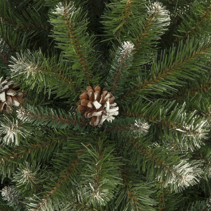 Напольная искусственная ёлка высотой 120 см с эффектом заснеженности и натуральными шишками создаст атмосферу зимнего леса в вашем доме. Каркас из металла и ветки из ПВХ на крючках обеспечивают устойчивость и удобство сборки, а отгибающиеся ветви позволяют легко формировать нужную густоту и форму дерева.