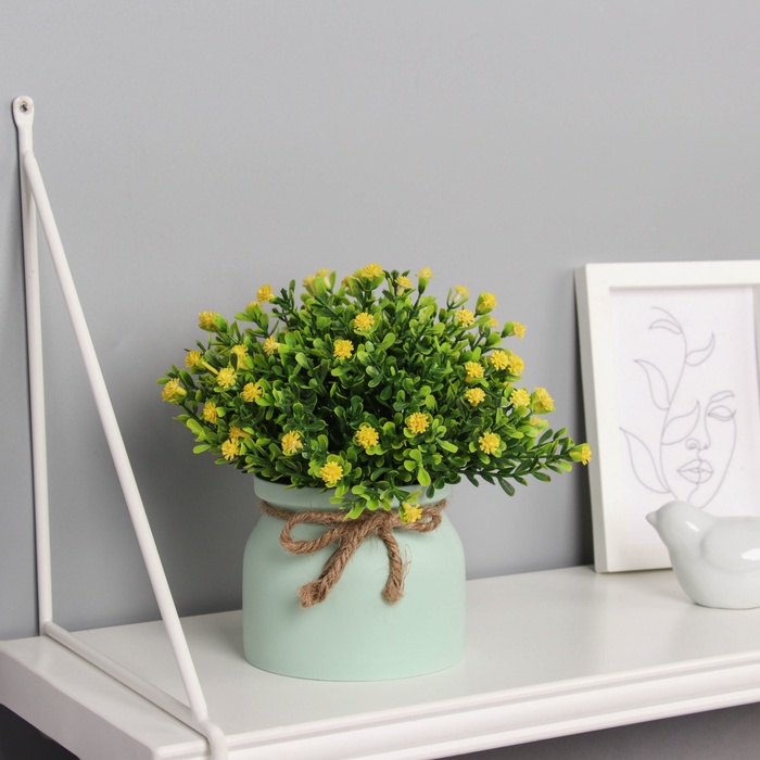 - Размер и внешний вид: Высота около 17 см, компактный размер позволяет разместить его на столе, полке или подоконнике. Искусственный цветок напоминает живое растение, но не требует полива или солнечного света.