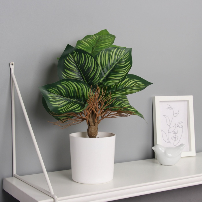 Этот искусственный калатея — идеальный выбор для тех, кто хочет добавить зелени в интерьер без лишних хлопот. Он создаст атмосферу уюта и природной свежести, подчеркивая стиль и заботу о деталях вашего пространства.