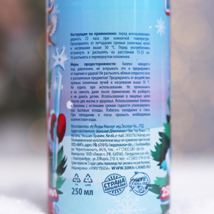 Продукт особенно актуален для новогодних праздников, когда хочется создать уют и волшебство в каждом уголке. Спрей с эффектом инея можно использовать не только как элемент декора, но и в качестве основы для создания оригинальных новогодних композиций и украшений.