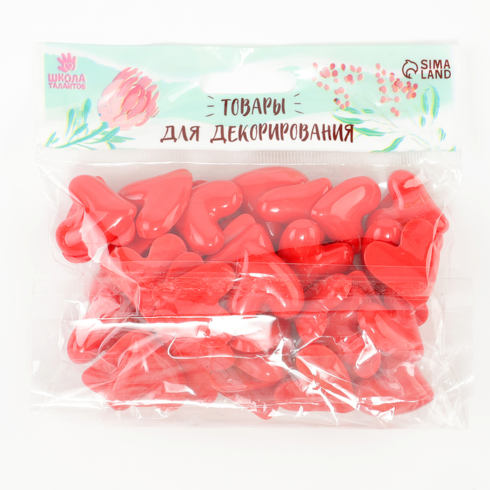 Кабошон «Сердечко», набор 50 шт., размер 1 шт. — 2,6 × 2,6 × 0,3 см, цвет красный