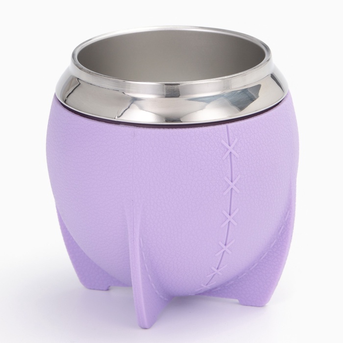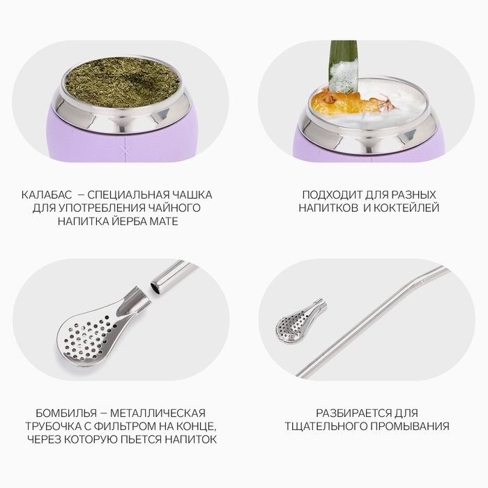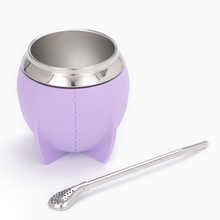 Калабас и бомбилья для приготовления чая Мате, 240 мл, с щёткой для чистки, нержавеющая сталь, сиреневые