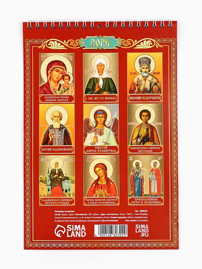 Календарь 2026 на пружине без ригеля «Церковно-православный»