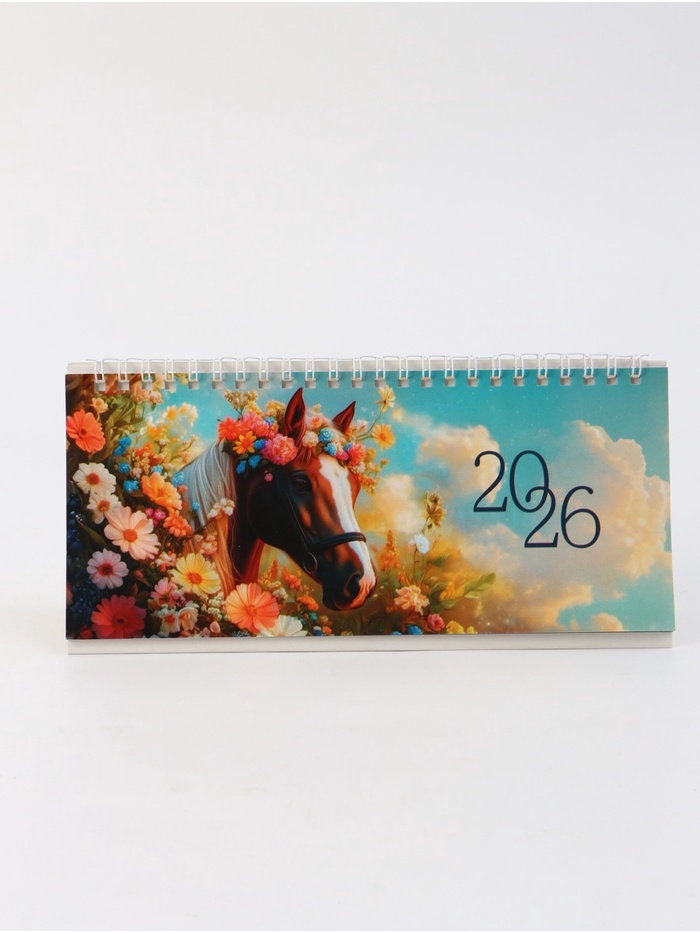 Календарь 2026 настольный, домик с курсором «Лошадь с цветами»