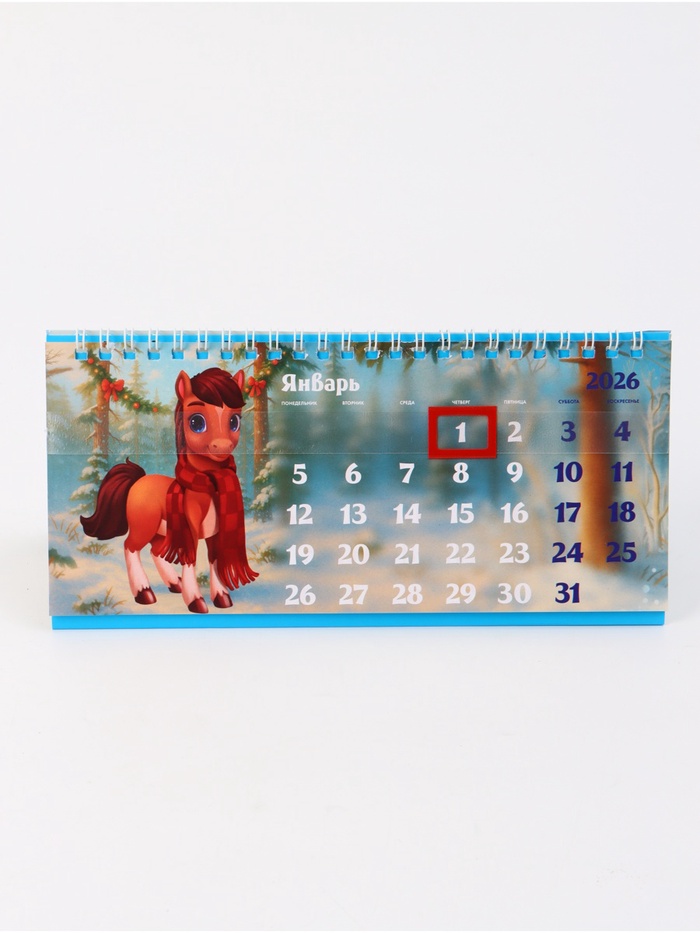 Календарь 2026 настольный, домик с курсором «Лошадка принесёт счастья»