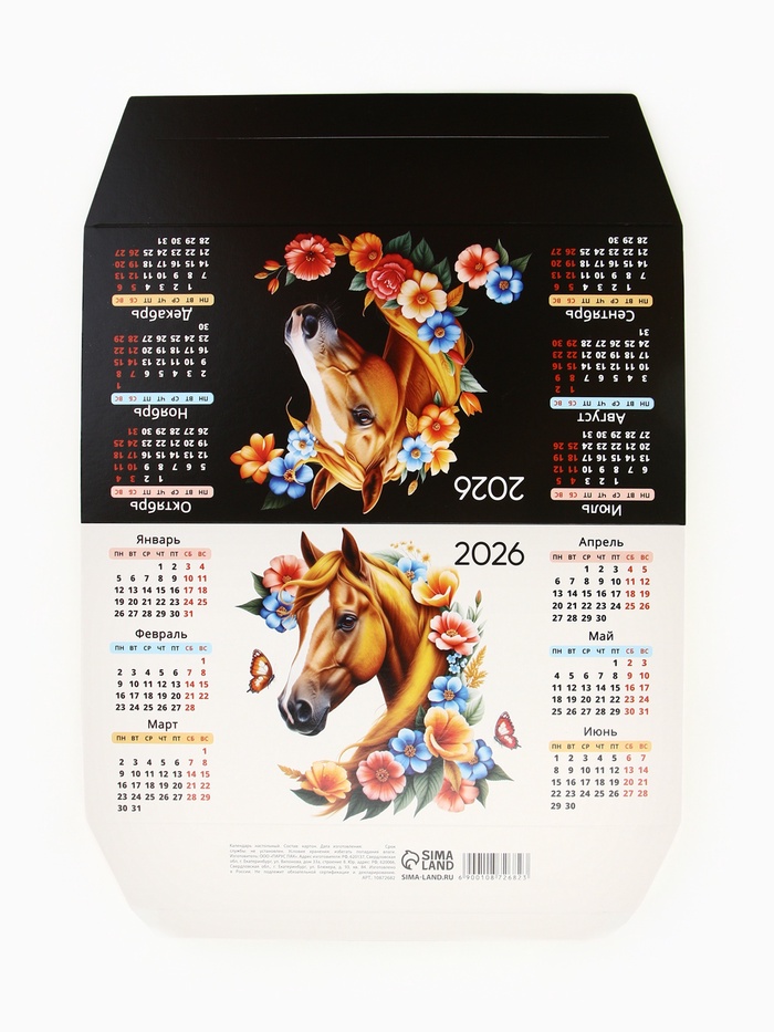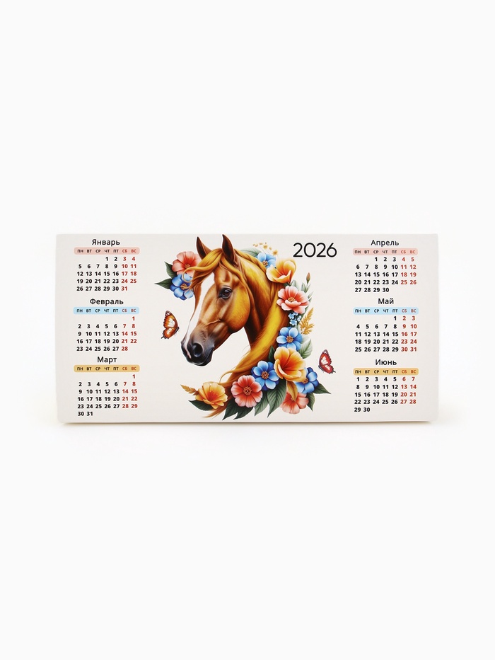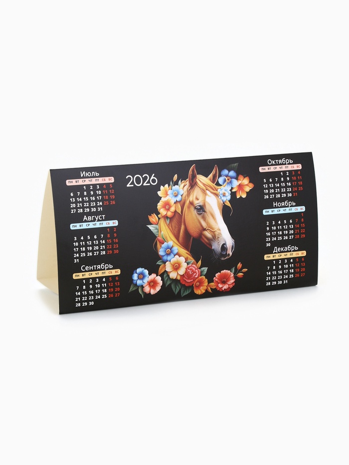 Календарь 2026 треугольный настольный «Лошадь с цветами»