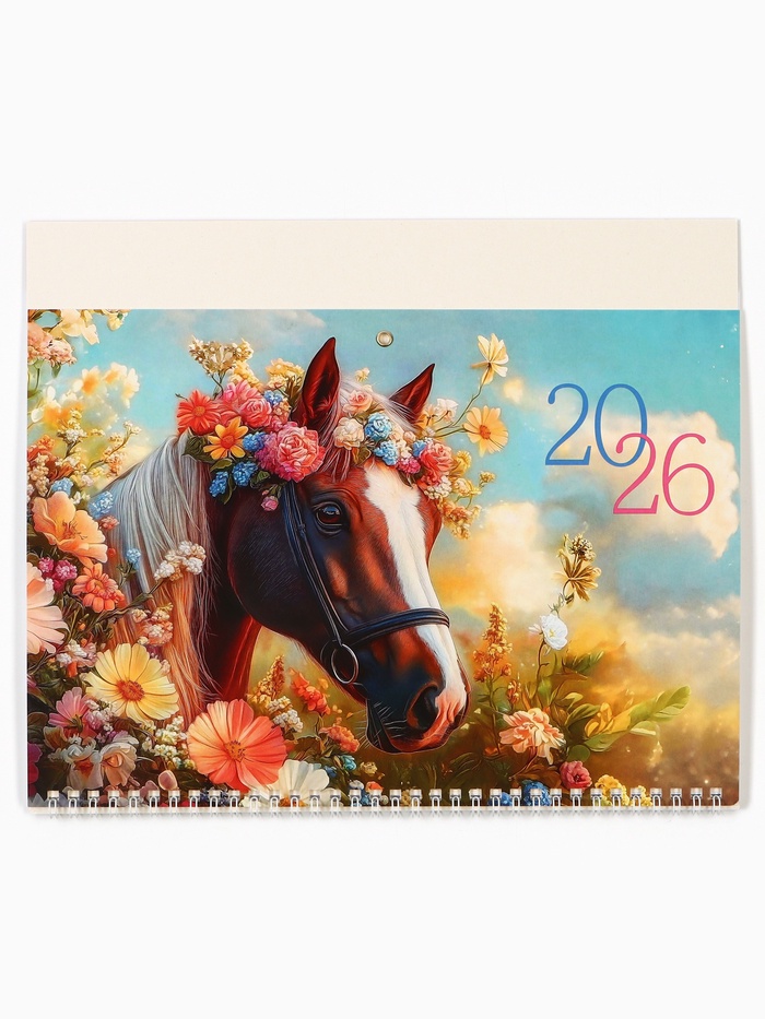 Календарь настенный квартальный 2026 «Лошадь с цветами», 30×46 см