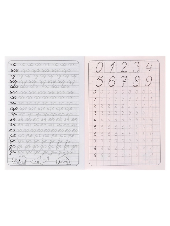 - Страницы с узкой линейкой и клеткой помогают ребёнку ориентироваться при написании букв, цифр и слогов.