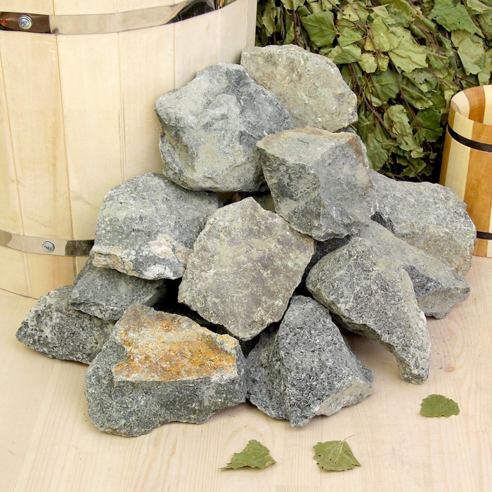 Для бани и сауны подходят лишь те камни, которые не трескаются от перепадов температуры и не выделяют вредных веществ. Одной из таких пород является габбро-диабаз. Благодаря своеобразной офитовой структуре габбро-диабаз обладает высокой теплопроводностью, что гарантирует быстрый и равномерный прогрев камня.