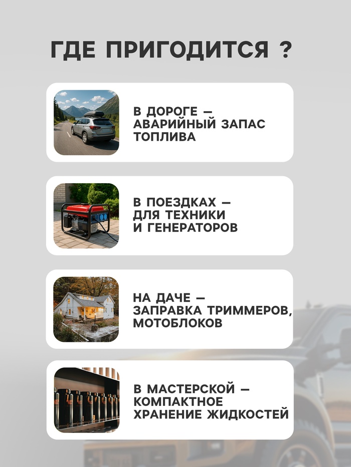 Новая модель обладает несколькими важными функциями, которых не было у предшественниц. Во-первых, крышка канистры теперь имеет функцию защиты от детей. Во-вторых, модернизирован внутренний уплотнитель, который сейчас не пропускает пары бензина.