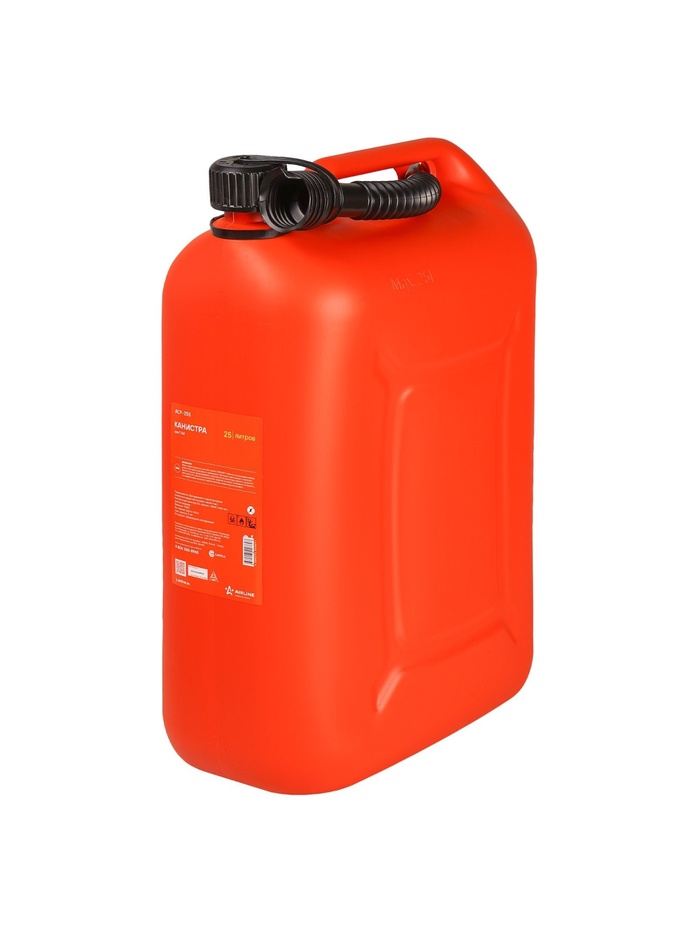 В пластиковой канистре Airline ACF-25S объёмом 25 литров вы длительное время сможете хранить бензин или автомобильное масло. Изделие не накапливает статистический заряд и имеет сертификацию в соответствии с законом РФ «О пожарной безопасности».