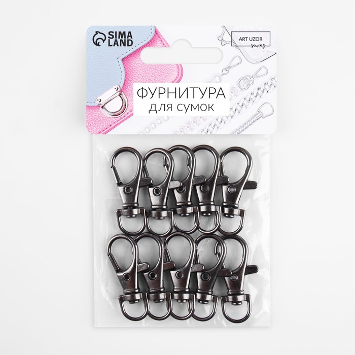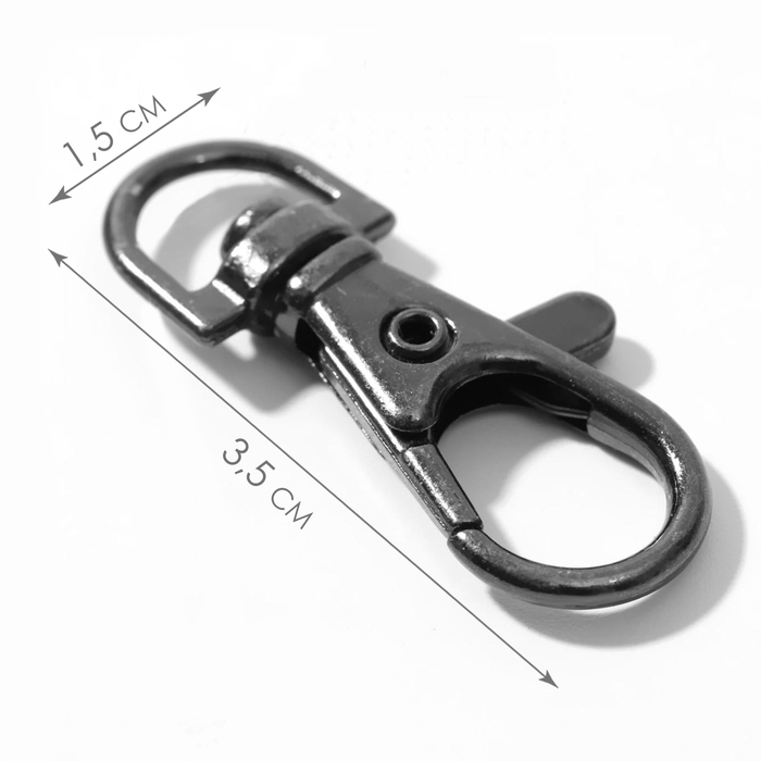 Металлический карабин предназначен для крепления ремней, ручек или декоративных элементов к сумке. Изготовлен из прочного металла, имеет гладкую поверхность и элегантный вид, что делает его не только функциональным, но и стильным элементом фурнитуры.