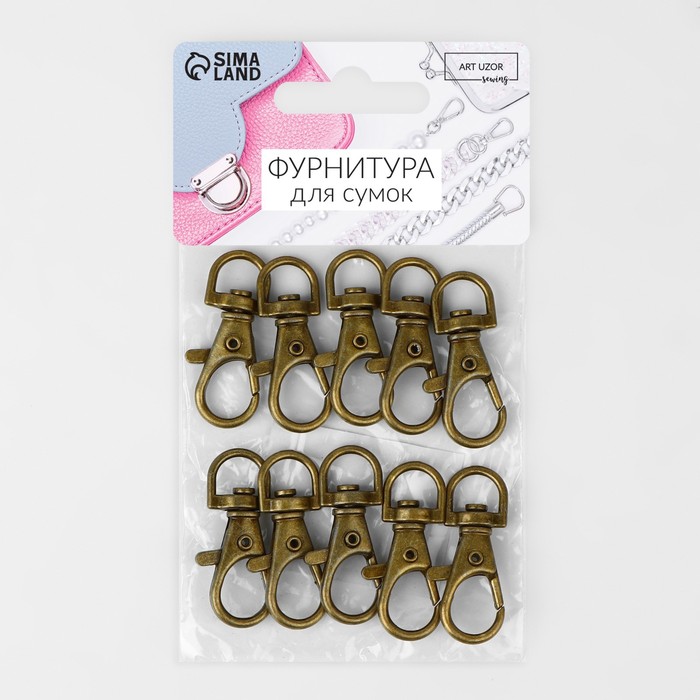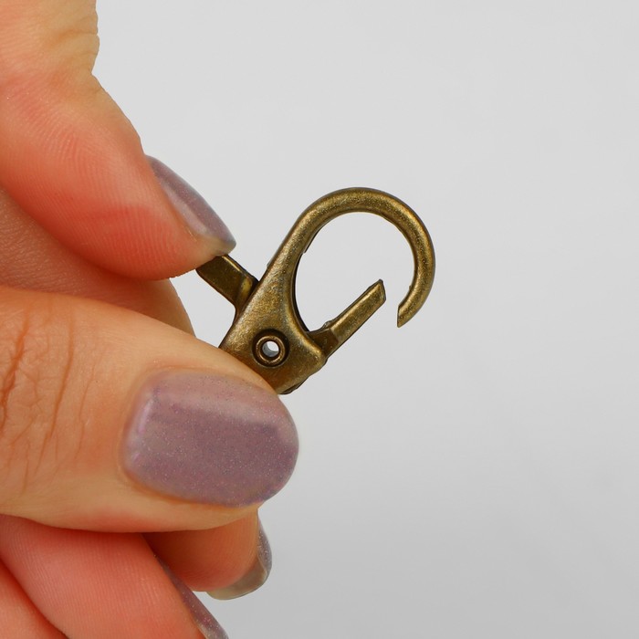 Металлический карабин предназначен для крепления ремней, ручек или декоративных элементов к сумке. Изготовлен из прочного металла, имеет гладкую поверхность и элегантный вид, что делает его не только функциональным, но и стильным элементом фурнитуры.
