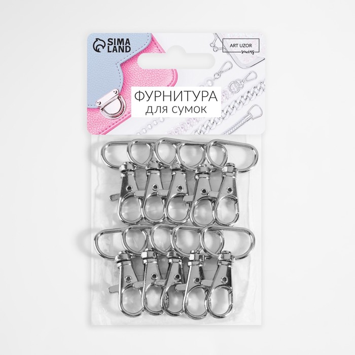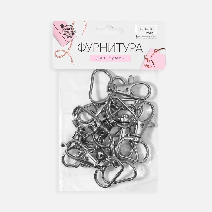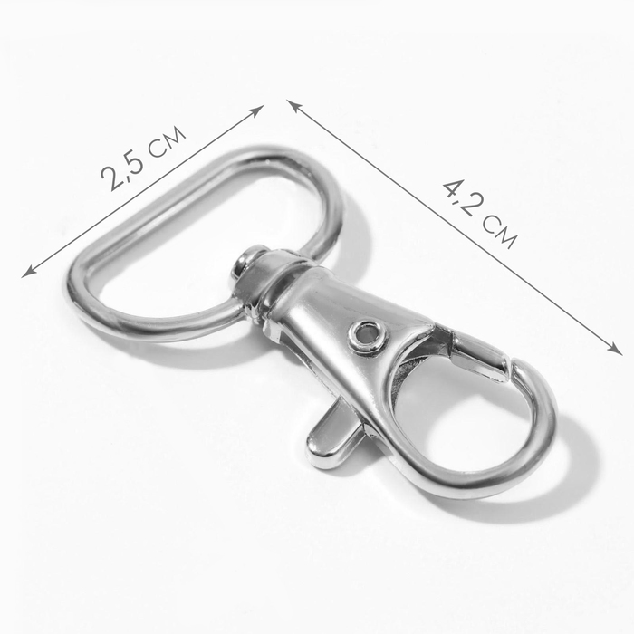 Карабин металлический, 42×25 мм / 20×3 мм, 10 шт., цвет серебряный