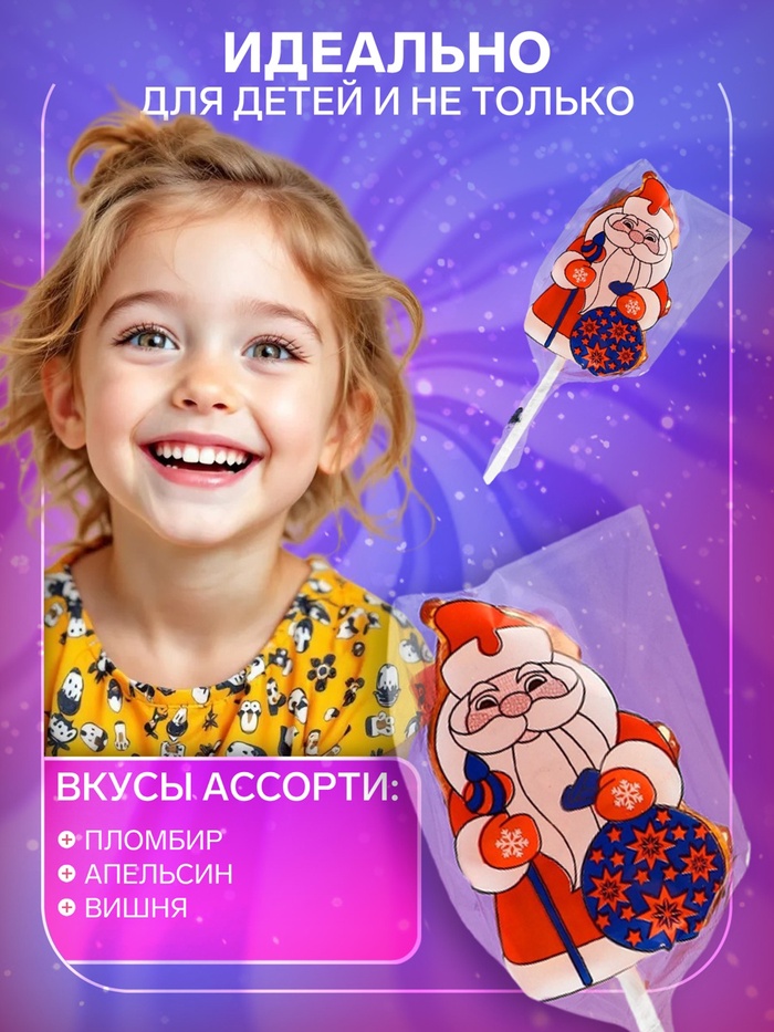 Леденец - это отличный, оригинальный подарок. Леденцы на палочке произведут WOW эффект на именинника и гостей, украсят любой десерт или могут стать оригинальным подарком ребенку. Подойдёт в качестве украшения - леденцы на торт и для украшения коктейлей. Леденцы на палочке, отличное угощение для маленьких и больших любителей сладостей. Упакован в индивидуальную пленку. Длина палочки позволяет их использовать как декор в качестве украшения торта.
