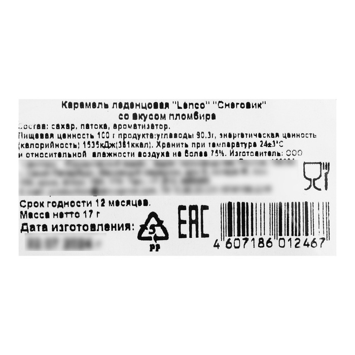 Состав: сахар, патока, натуральный ароматизатор, краситель, бета-каротин.
