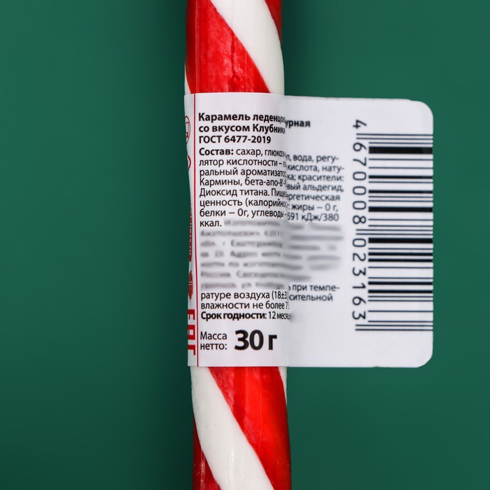 Карамель леденцовая новогодняя Sweet Ness "Трость", со вкусом клубники, 30 г