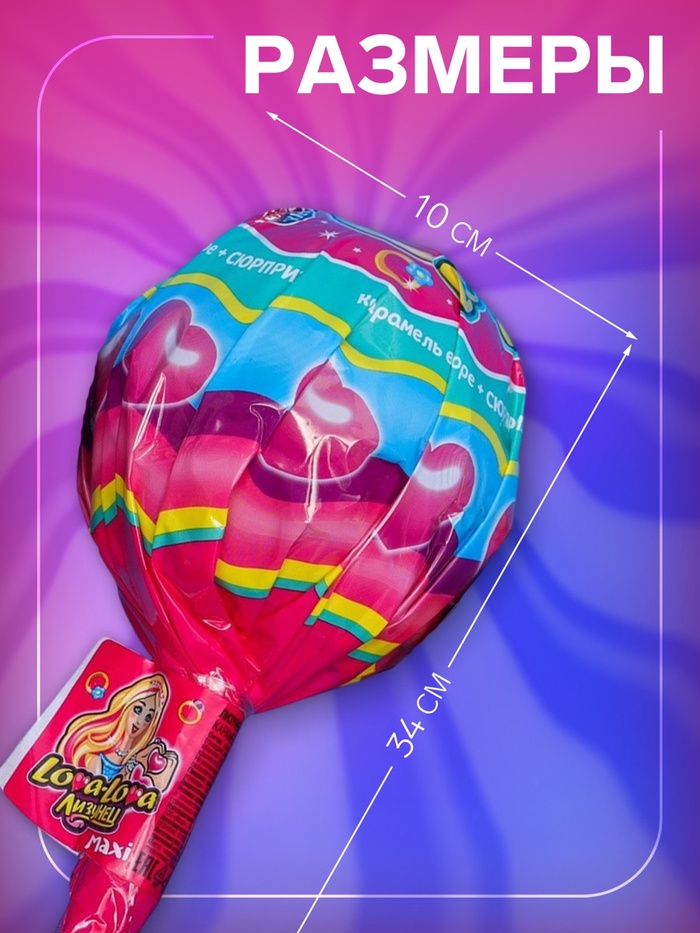 Если вы ищете необычный леденец, который может стать отличным подарком или просто хорошим способом разнообразить свой лакомый ассортимент, то карамель на палочке "Лизунец MAXI Lova-Lova"" точно стоит попробовать.