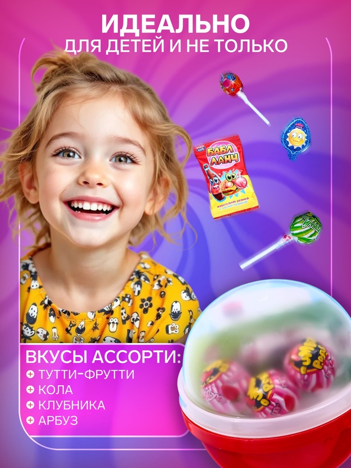 Чупа-чупс большого размера не оставит равнодушным ни одного ребенка. Красочный и яркий леденец имеет классический сладкий вкус, а также сюрприз внутри. Этот леденец идеально подойдет для детских праздников, подарков или просто как приятный лакомый перекус. Его можно использовать для игры, чтобы занять детей на время, и в то же время угостить их вкусной и качественной карамелью на палочке.