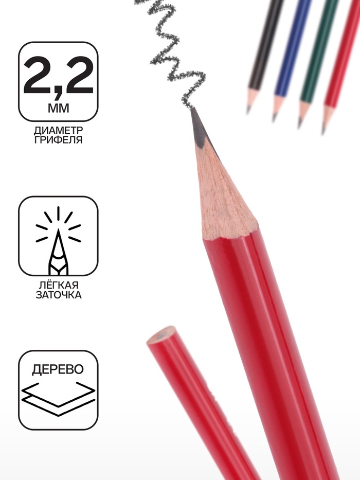Классический трехгранный чернографитный карандаш из отборной древесины, твердость НВ. Специальная пропитка древесины и сплошная проклейка грифеля обеспечивает высокую ударопрочность. Мягкая древесина и идеальная центровка грифеля гарантируют легкую заточку с экономным расходом карандаша. Грифель диаметром 2.2 мм не царапает бумагу и не крошится. Длина 175 мм.