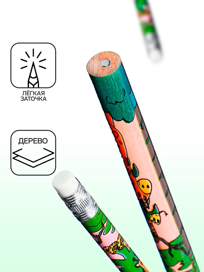 Карандаш чернографитный Calligrata «Зверушки», НВ, с ластиком, корпус круглый