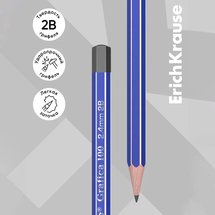 Карандаш чернографитный ErichKrause «Grafica 100», 2B, грифель d=2.2 мм, дерево, шестигранный, в коробке, синий корпус