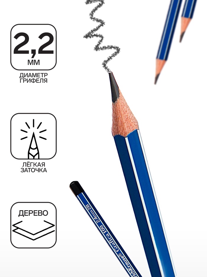 - Мягкая древесина и идеальная центровка грифеля гарантируют легкую заточку с экономным расходом карандаша.