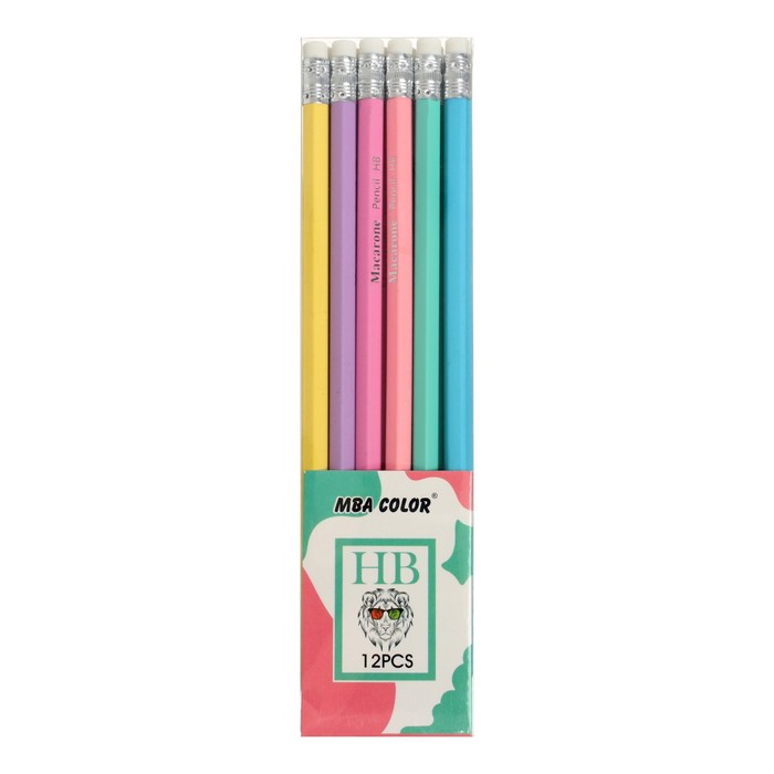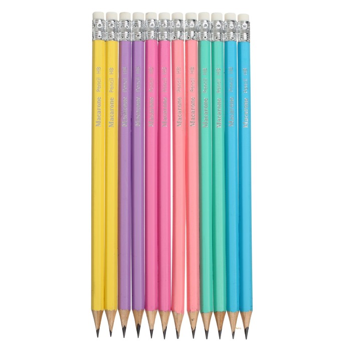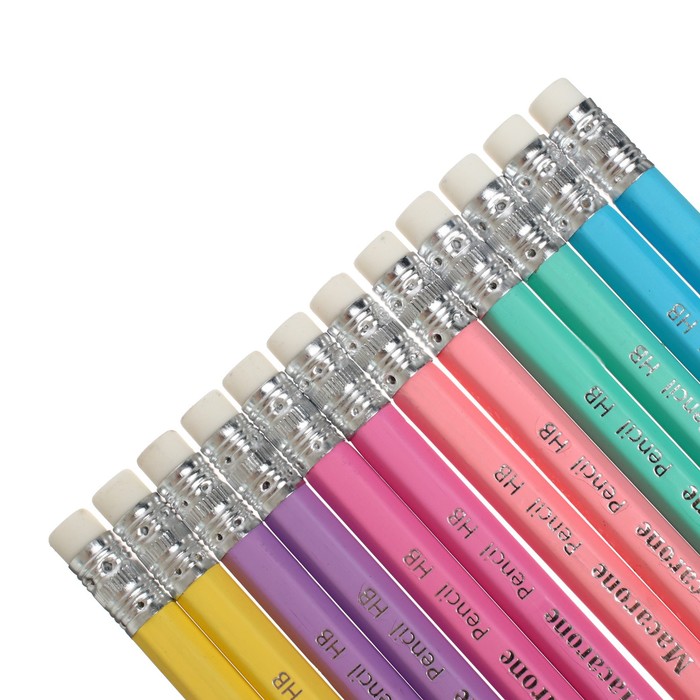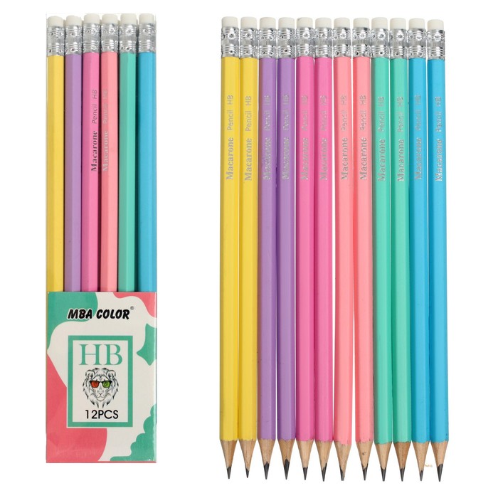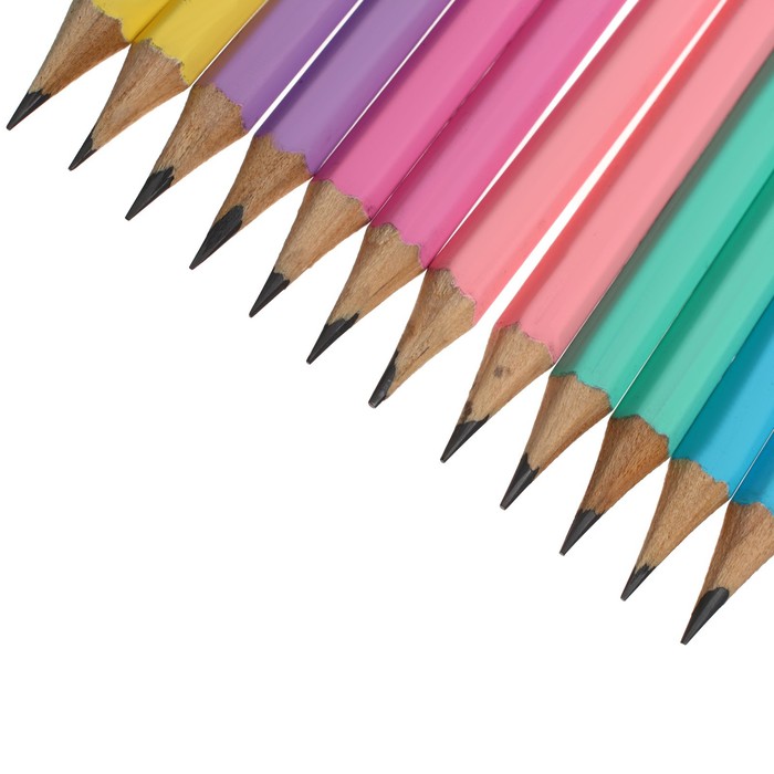 Карандаш чернографитный «Пастельный» твёрдость НВ, с ластиком, шестигранный, заточенный, корпус МИКС,