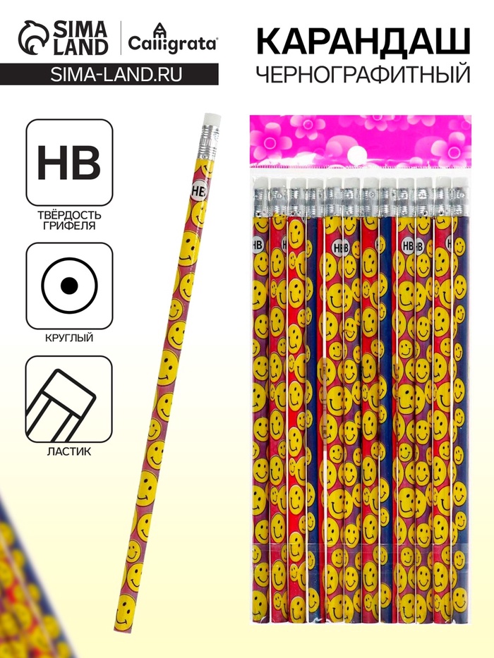 Карандаш чернографитный изготовлен из дерева высокого качества и оснащен ластиком.