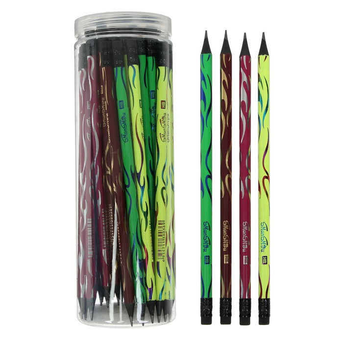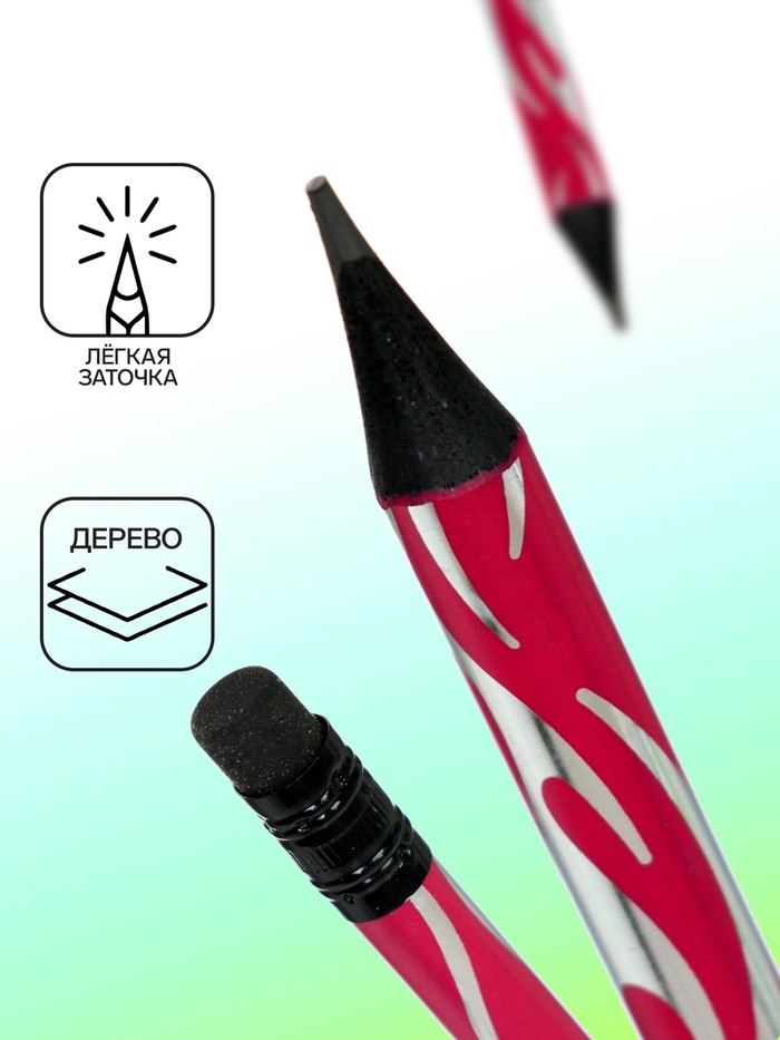 Карандаш чернографитный изготовлен из дерева высокого качества и оснащен ластиком.