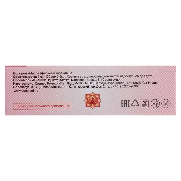 Карандаш-ингалятор Долорон состоит из двух частей: верхняя часть - ингалятор, нижняя - емкость с эфирными маслами.