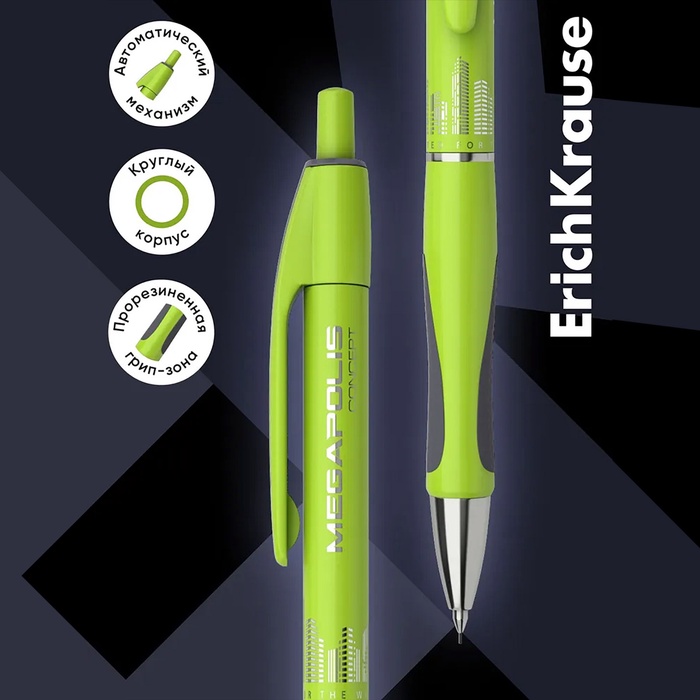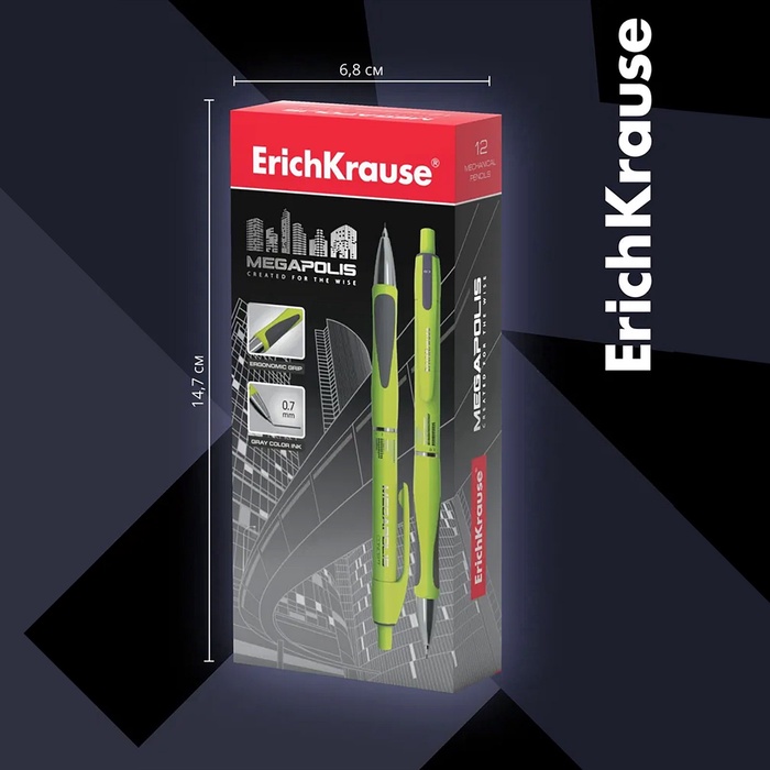 Модель MEGAPOLIS® Concept имеет узнаваемую запатентованную форму, обладает великолепной эргономикой и стала одним из бестселлеров в ассортименте механических карандашей ErichKrause® более чем в пятидесяти странах мира.