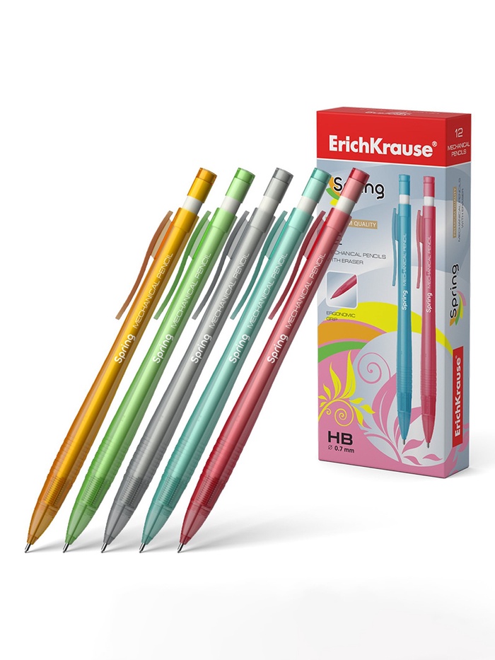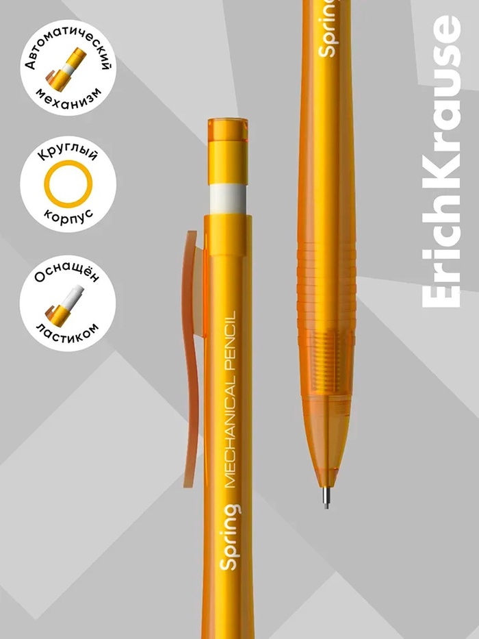 Механический карандаш круглой формы с профилированной зоной упора и убирающейся цангой.
