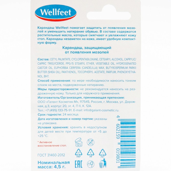 Карандаш-пластырь медицинский от появления мозолей Wellfeet помогает предотвратить образование мозолей и натоптышей на ногах, снижая трение кожи о внутренние поверхности обуви.