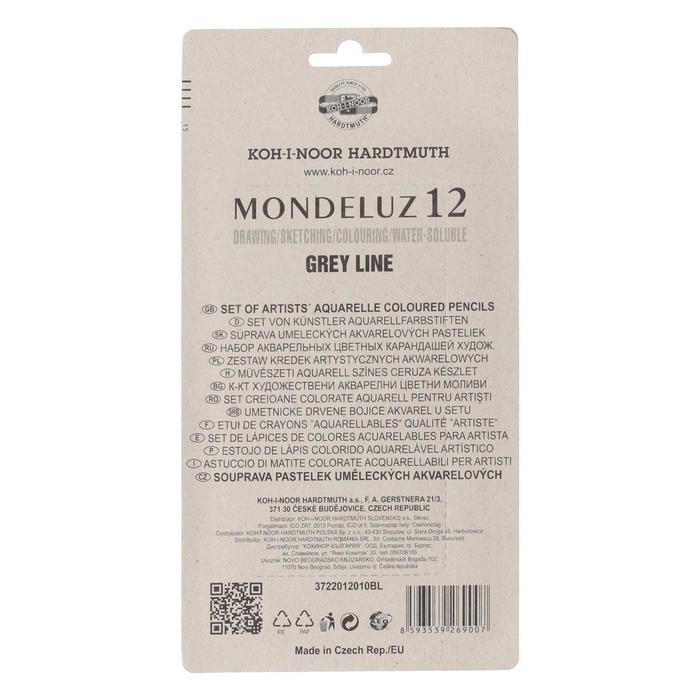 Карандаши цветные акварельные Koh-I-Noor Mondeluz 3722, 12 шт., серая гамма, в металлическом пенале в блистере