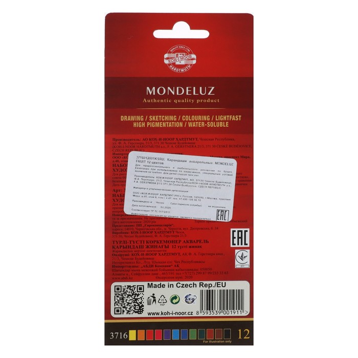 Акварельные карандаши Koh-I-Noor серии Mondeluz предназначены для профессиональных и начинающих художников. Карандаши оставляют яркие выразительные линии на поверхности, мягко пишут. Грифель легко затачивается. Следы не размываются водой и не выгорают на солнце. Корпус карандашей изготовлен из кедра специальной породы, что делает его прочным и удобным в использовании.